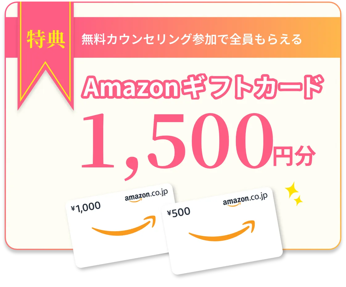 無料カウンセリング参加で全員もらえる Amazonギフトカード1,500円分